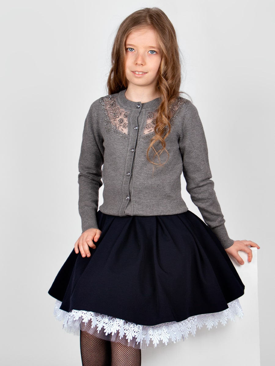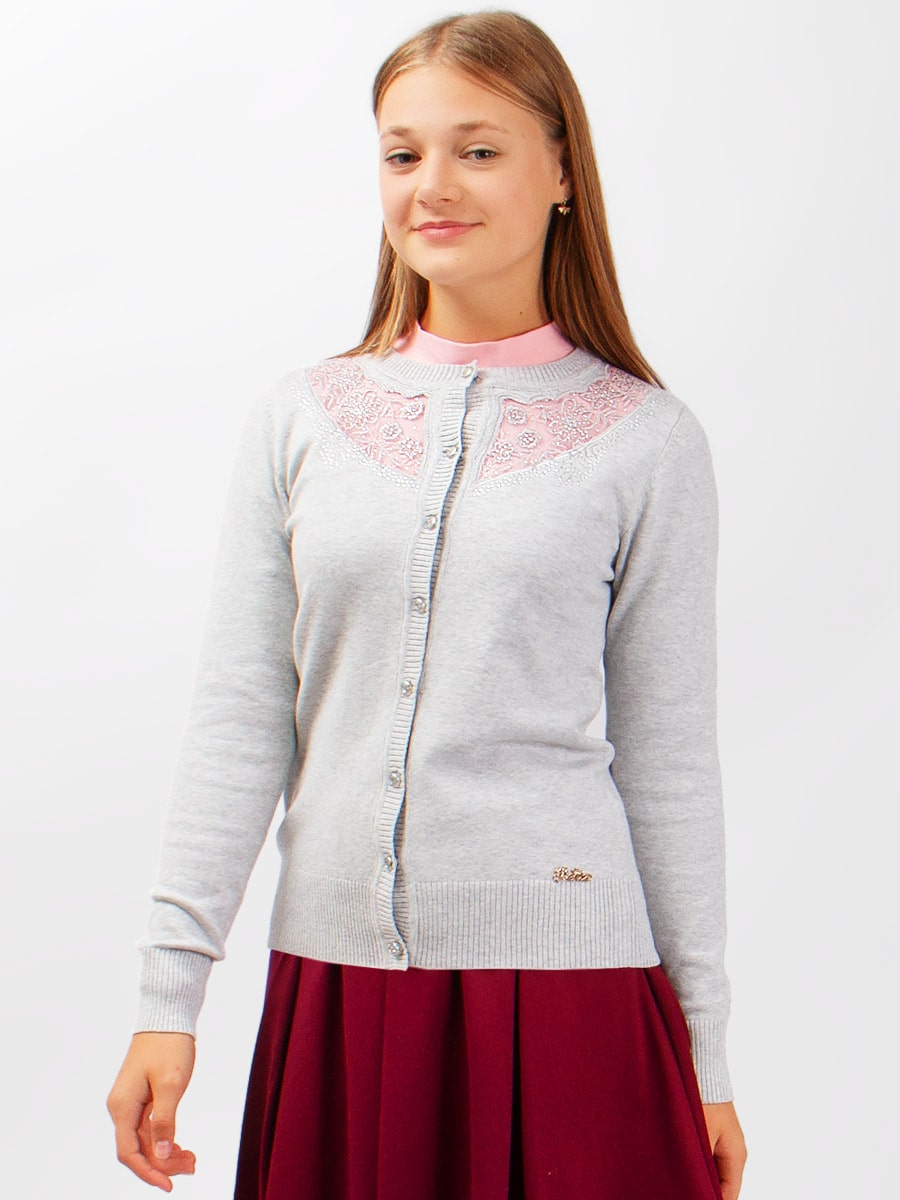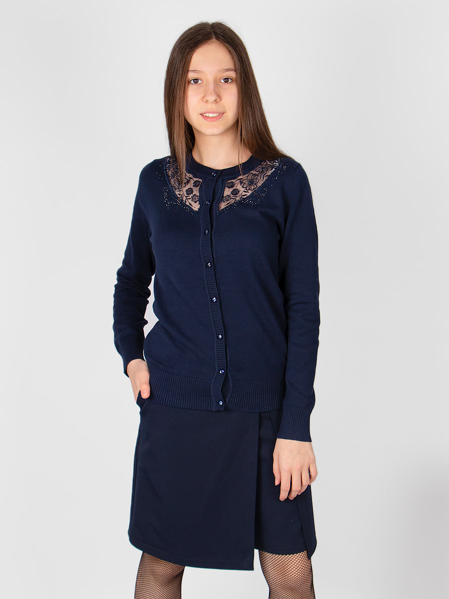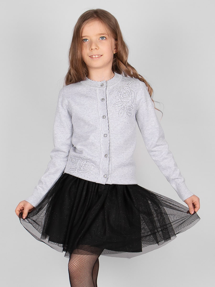 Изысканный кардиган на пуговицах, с прозрачной вставкой из фатина. Модель декорирована нежной вышивкой и стразами. Мягкий, вязаный трикотаж не сковывает движений, обладает хорошей воздухопроницаемостью и приятно облегает тело. Кардиган прекрасно сочетается как с юбками, так и с брюками. Подойдет для посещения школы, официального или праздничного мероприятия. Размер 122-128 (рост 122-128 см) длина изделия 49 см, обхват груди 68 см, длина рукава 50 см. Размер 128-134 (рост 128-134 см) длина изделия 52 см, обхват груди 72 см, длина рукава 52 см. Размер 140-146 (рост 140-146 см) длина изделия 55 см, обхват груди 74 см, длина рукава 55 см. Размер 152-158 (рост 152-158 см) длина изделия 57 см, обхват груди 78 см, длина рукава 58 см. Размер 164-170 (рост 164-170 см) длина изделия 60 см, обхват груди 82 см, длина рукава 60 см.