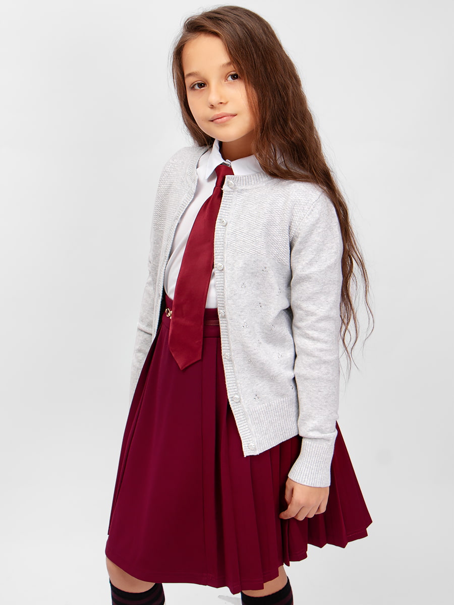 Элегантный кардиган на пуговицах, декорированный стразами. Особый шарм модели придает оригинальная съемная брошь. Мягкий, вязаный трикотаж не сковывает движений, обладает хорошей воздухопроницаемостью и приятно облегает тело. Кардиган прекрасно сочетается как с юбками, так и с брюками. Подойдет для посещения школы, официального или праздничного мероприятия. Размер 128 (рост 122-128 см) длина изделия 44 см, обхват груди 60 см, длина рукава 44 см. Размер 134 (рост 128-134 см) длина изделия 46 см, обхват груди 64 см, длина рукава 48 см. Размер 140 (рост 134-140 см) длина изделия 50 см, обхват груди 70 см, длина рукава 52 см. Размер 146 (рост 140-146 см) длина изделия 52 см, обхват груди 72 см, длина рукава 54 см. Размер 152 (рост 146-152 см) длина изделия 56 см, обхват груди 74 см, длина рукава 58 см.