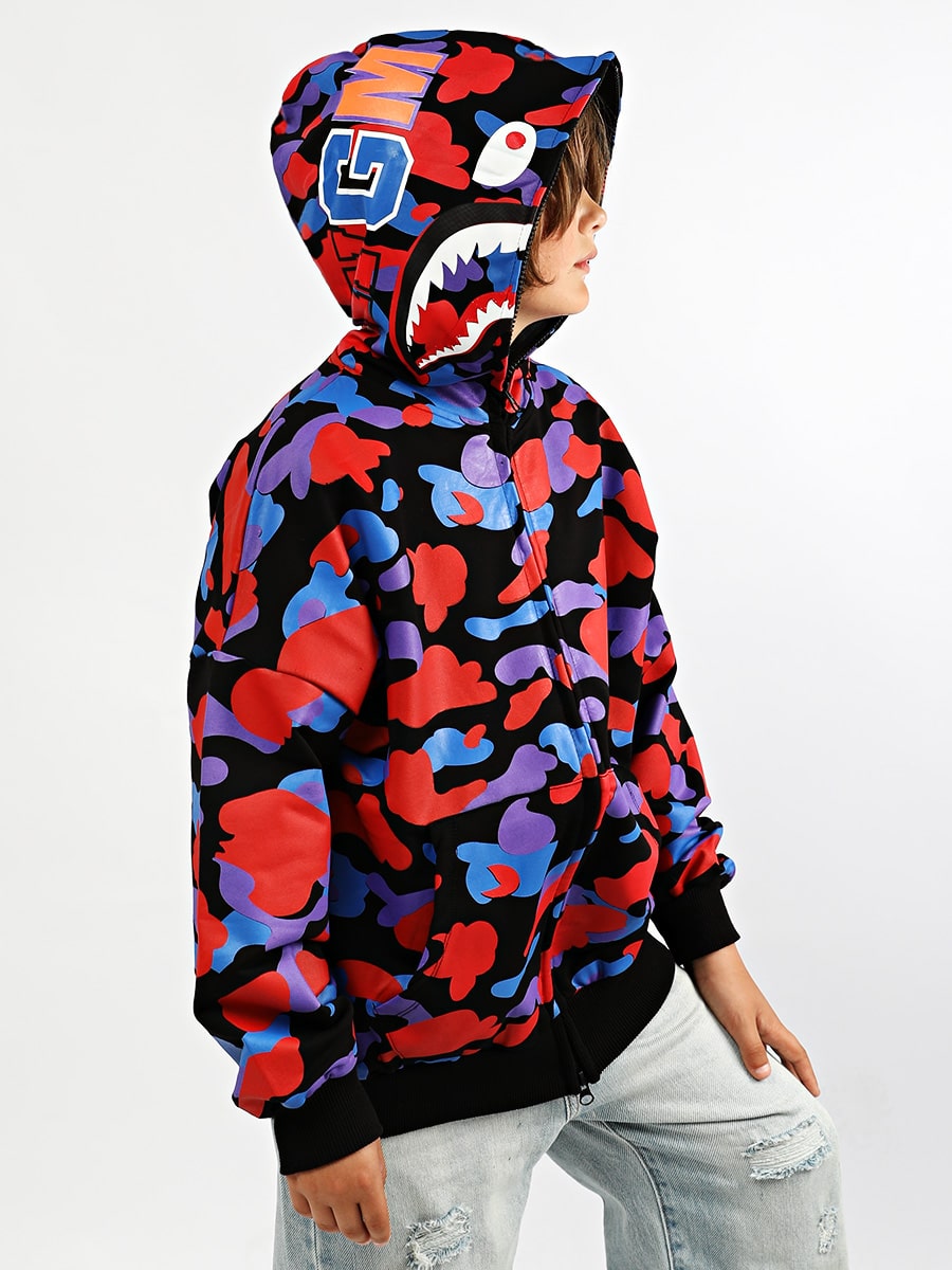 Толстовка Соль&Перец, силуэта оверсайз. Выполнена из плотного и эластичного материала «футер двухнитка», который хорошо пропускает воздух, не теряет форму и приятный к телу. Толстовка по всей длине на молнии, с маской акулы на капюшоне и ярким принтом. Рукава и низ толстовки с широкими, эластичными манжетами. Размер 110 (рост 110-116 см) длина изделия 56 см, обхват груди 96 см, длина рукава (реглан) 58 см. Размер 122 (рост 122-128 см) длина изделия 58 см, обхват груди 100 см, длина рукава (реглан) 62 см. Размер 134 (рост 134-140 см) длина изделия 62 см, обхват груди 108 см, длина рукава (реглан) 66 см. Размер 140 (рост 140-146 см) длина изделия 64 см, обхват груди 110 см, длина рукава (реглан) 68 см. Размер 152 (рост 152-158 см) длина изделия 68 см, обхват груди 116 см, длина рукава (реглан) 72 см. Размер 164 (рост 164-170 см) длина изделия 70 см, обхват груди 120 см, длина рукава (реглан) 76 см.