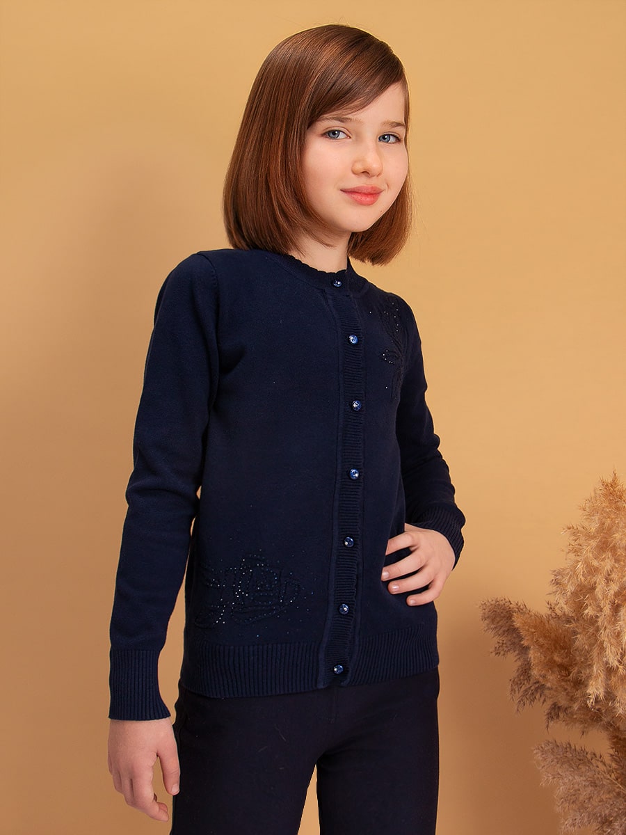 Элегантный кардиган на пуговицах, декорированный стразами и вышивкой. Мягкий, вязаный трикотаж не сковывает движений, обладает хорошей воздухопроницаемостью и приятно облегает тело. Кардиган прекрасно сочетается как с юбками, так и с брюками. Подойдет для посещения школы, официального или праздничного мероприятия. Размер 122-128 (рост 122-128 см) длина изделия 48 см, обхват груди 70 см, длина рукава 49 см. Размер 128-134 (рост 128-134 см) длина изделия 51 см, обхват груди 72 см, длина рукава 52 см. Размер 140-146 (рост 140-146 см) длина изделия 55 см, обхват груди 78 см, длина рукава 57 см. Размер 152-158 (рост 152-158 см) длина изделия 58 см, обхват груди 82 см, длина рукава 60 см. Размер 164-170 (рост 164-170 см) длина изделия 60 см, обхват груди 86 см, длина рукава 61 см.