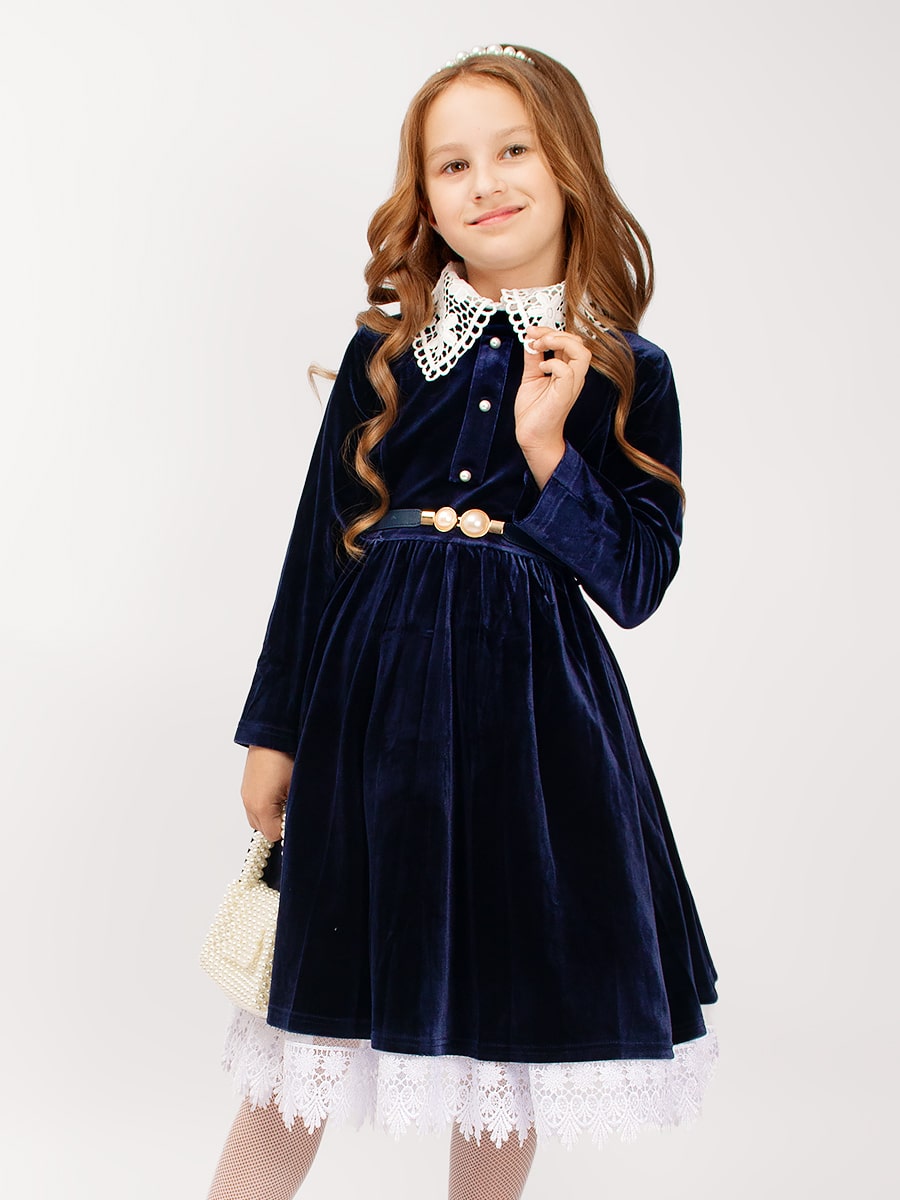 Очаровательное платье для девочки Соль&Перец из бархата, с длинным рукавом. Платье дополнено съёмными поясом-резинкой и белым кружевным воротником. Износоустойчивый материал позволит надолго сохранить форму и привлекательный внешний вид изделия. Идеальный выбор для создания стильного, школьного образа. Платье без подъюбника. Размер 128 (рост 122-128 см) длина изделия 70 см, обхват груди 76 см, длина рукава 40 см. Размер 134 (рост 128-134 см) длина изделия 72 см, обхват груди 78 см, длина рукава 42 см. Размер 140 (рост 134-140 см) длина изделия 78 см, обхват груди 80 см, длина рукава 46 см. Размер 146 (рост 140-146 см) длина изделия 82 см, обхват груди 84 см, длина рукава 48 см. Размер 152 (рост 146-152 см) длина изделия 84 см, обхват груди 86 см, длина рукава 50 см.