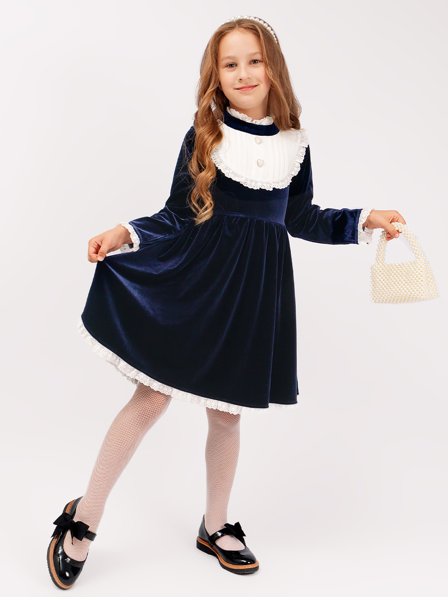 Очаровательное платье для девочки Соль&Перец из бархата, с отрезной кокеткой. Платье декорировано белой кружевной окантовкой и дополнено съёмной брошью. Износоустойчивый материал позволит надолго сохранить форму и привлекательный внешний вид изделия. Идеальный выбор для создания стильного, школьного образа. Платье без подъюбника. Размер 128 (рост 122-128 см) длина изделия 70 см, обхват груди 72 см, длина рукава 38 см. Размер 134 (рост 128-134 см) длина изделия 76 см, обхват груди 74 см, длина рукава 42 см. Размер 140 (рост 134-140 см) длина изделия 80 см, обхват груди 78 см, длина рукава 44 см. Размер 146 (рост 140-146 см) длина изделия 82 см, обхват груди 80 см, длина рукава 46 см. Размер 152 (рост 146-152 см) длина изделия 86 см, обхват груди 86 см, длина рукава 48 см.