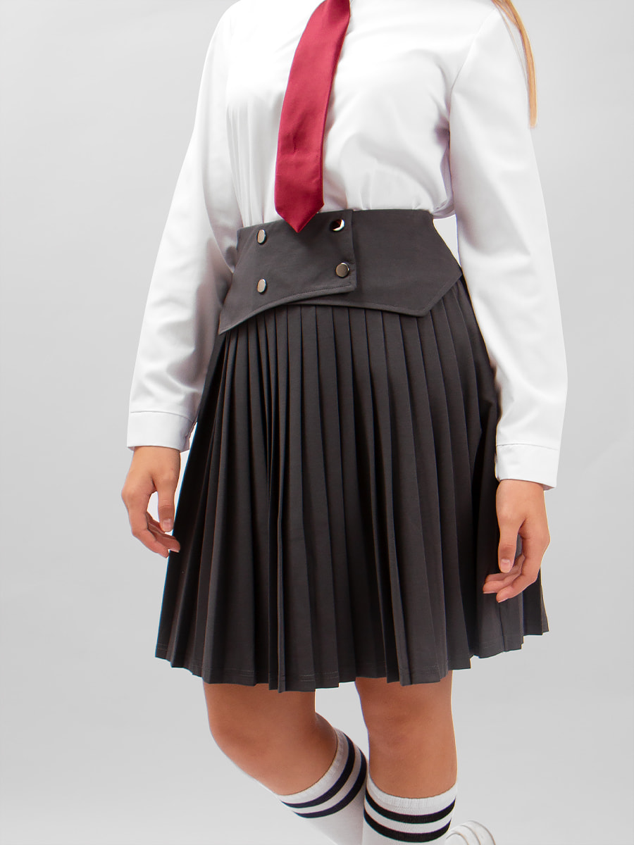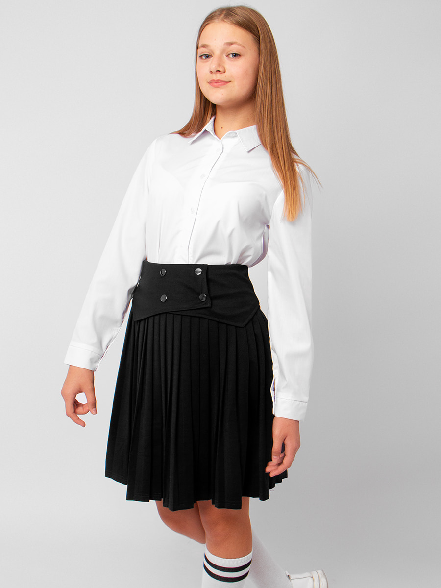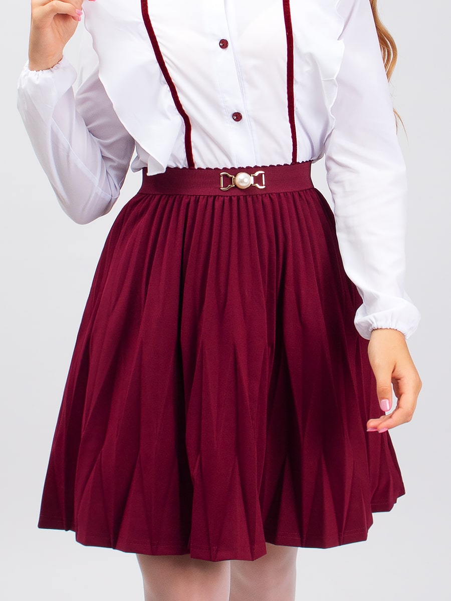 Юбка для девочки Соль&Перец силуэта солнце-клёш, в складку, с декором на поясе. В пояс вшита резинка для регулировки обхвата талии. Износоустойчивый материал позволит надолго сохранить форму и привлекательный внешний вид изделия. Идеальный выбор для создания стильного, школьного образа. Размер 128 (рост 122-128 см) длина изделия 46 см, обхват талии 56 см. Размер 134 (рост 128-134 см) длина изделия 48 см, обхват талии 58 см. Размер 140 (рост 134-140 см) длина изделия 50 см, обхват талии 60 см. Размер 146 (рост 140-146 см) длина изделия 52 см, обхват талии 64 см. Размер 152 (рост 146-152 см) длина изделия 54 см, обхват талии 68 см.