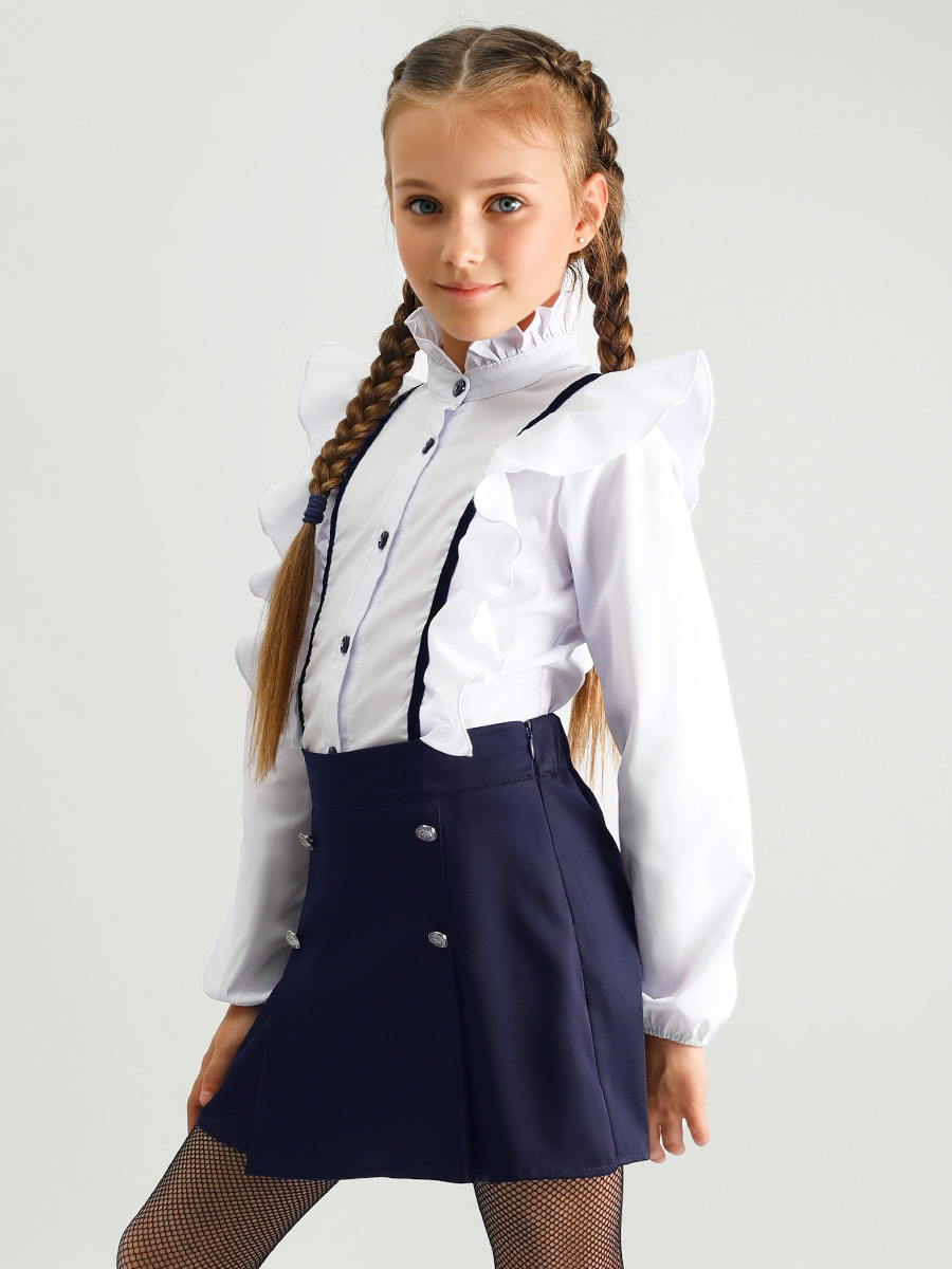 Юбка для девочки Соль&Перец выполнена из качественного габардина, который состоит из 80% полиэстера и 20% вискозы. Такая ткань отлично держит форму и устойчива к сминанию, что особенно важно для школьной одежды. Модель оснащена удобным широким поясом-резинкой, который обеспечивает комфортную посадку по фигуре. Юбка украшена воланом и лентами-завязками, выполненными из основной ткани. Это придаёт модели нарядный и женственный вид, при этом сохраняя строгость, необходимую для школьной формы. Размер 122 (рост 116-122 см) длина изделия 42 см, обхват талии 52 см. Размер 128 (рост 122-128 см) длина изделия 44 см, обхват талии 54 см. Размер 134 (рост 128-134 см) длина изделия 46 см, обхват талии 58 см. Размер 140 (рост 134-140 см) длина изделия 48 см, обхват талии 62 см. Размер 146 (рост 140-146 см) длина изделия 50 см, обхват талии 64 см.