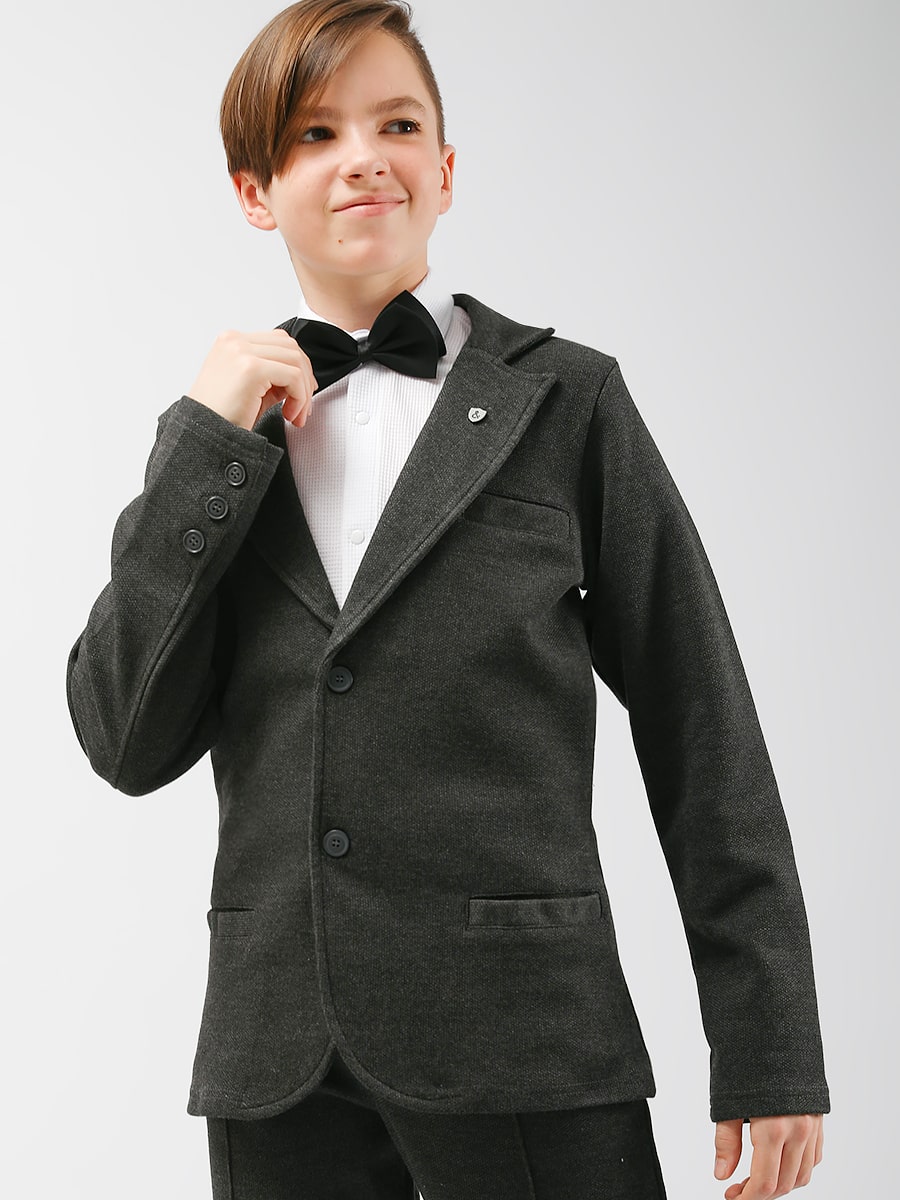 Пиджак для мальчика Соль&Перец. Рукава и низ изделия с широкими, эластичными манжетами. Модель идеально сочетается с брюками любого фасона и подойдет как для школы, так и для торжественного мероприятия. Размер 128 (рост 122-128 см) длина изделия 51 см, обхват груди 78 см, длина рукава 48 см. Размер 134 (рост 128-134 см) длина изделия 52 см, обхват груди 80 см, длина рукава 51 см. Размер 140 (рост 134-140 см) длина изделия 54 см, обхват груди 82 см, длина рукава 52 см. Размер 146 (рост 140-146 см) длина изделия 56 см, обхват груди 84 см, длина рукава 54 см. Размер 152 (рост 146-152 см) длина изделия 58 см, обхват груди 88 см, длина рукава 56 см. Размер 158 (рост 152-158 см) длина изделия 60 см, обхват груди 90 см, длина рукава 58 см. Размер 164 (рост 158-164 см) длина изделия 62 см, обхват груди 92 см, длина рукава 60 см. Размер 170 (рост 164-170 см) длина изделия 64 см, обхват груди 96 см, длина рукава 62 см.
