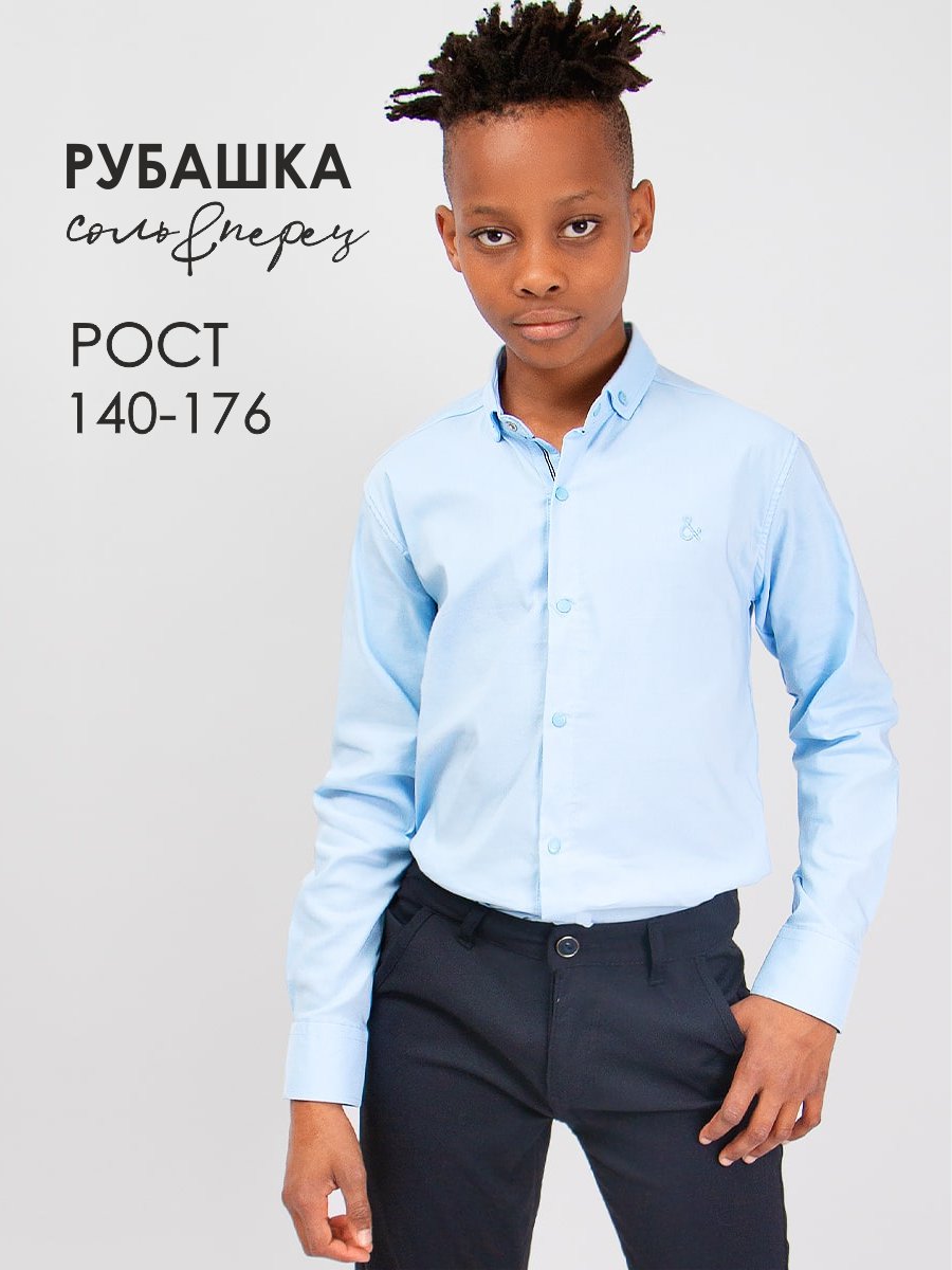 Классическая рубашка для мальчика Соль&Перец прямого силуэта, на кнопках. Рубашка выполнена из 100% хлопка для лёгкости и комфорта в повседневной носке. Рубашка идеально сочетается с брюками любого фасона и подойдет как для школы, так и для торжественного мероприятия. На груди вышивка логотип бренда. Размер 140 (рост 140-146 см) длина изделия 60 см, обхват груди 88 см, длина рукава 52 см. Размер 152 (рост 152-158 см) длина изделия 64 см, обхват груди 94 см, длина рукава 56 см. Размер 164 (рост 158-164 см) длина изделия 68 см, обхват груди 100 см, длина рукава 60 см. Размер 176 (рост 170-176 см) длина изделия 72 см, обхват груди 106 см, длина рукава 62 см.