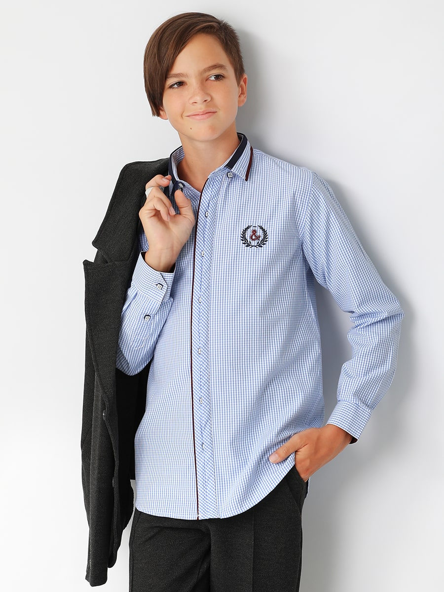Классическая рубашка для мальчика Соль&Перец прямого силуэта, на кнопках. Рубашка выполнена из натурального хлопка для лёгкости и комфорта в повседневной носке. Рубашка идеально сочетается с брюками любого фасона и подойдет как для школы, так и для торжественного мероприятия. На груди вышивка логотип бренда. Размер 140 (рост 140-146 см) длина изделия 60 см, обхват груди 86 см, длина рукава 52 см. Размер 152 (рост 152-158 см) длина изделия 64 см, обхват груди 92 см, длина рукава 56 см. Размер 164 (рост 158-164 см) длина изделия 68 см, обхват груди 100 см, длина рукава 60 см. Размер 176 (рост 170-176 см) длина изделия 70 см, обхват груди 108 см, длина рукава 62 см.