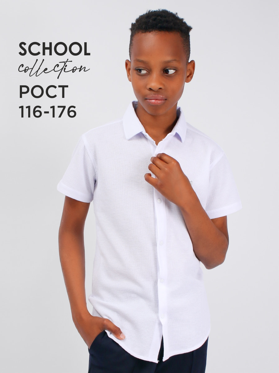 Классическая рубашка для мальчика Соль&Перец прямого силуэта, на кнопках. Рубашка выполнена из 100% хлопка для лёгкости и комфорта в повседневной носке. Рубашка идеально сочетается с брюками любого фасона и подойдет как для школы, так и для торжественного мероприятия. На груди вышивка логотип бренда. Размер 140 (рост 140-146 см) длина изделия 60 см, обхват груди 86 см. Размер 152 (рост 152-158 см) длина изделия 64 см, обхват груди 92 см. Размер 164 (рост 158-164 см) длина изделия 68 см, обхват груди 98 см. Размер 176 (рост 170-176 см) длина изделия 72 см, обхват груди 104 см.