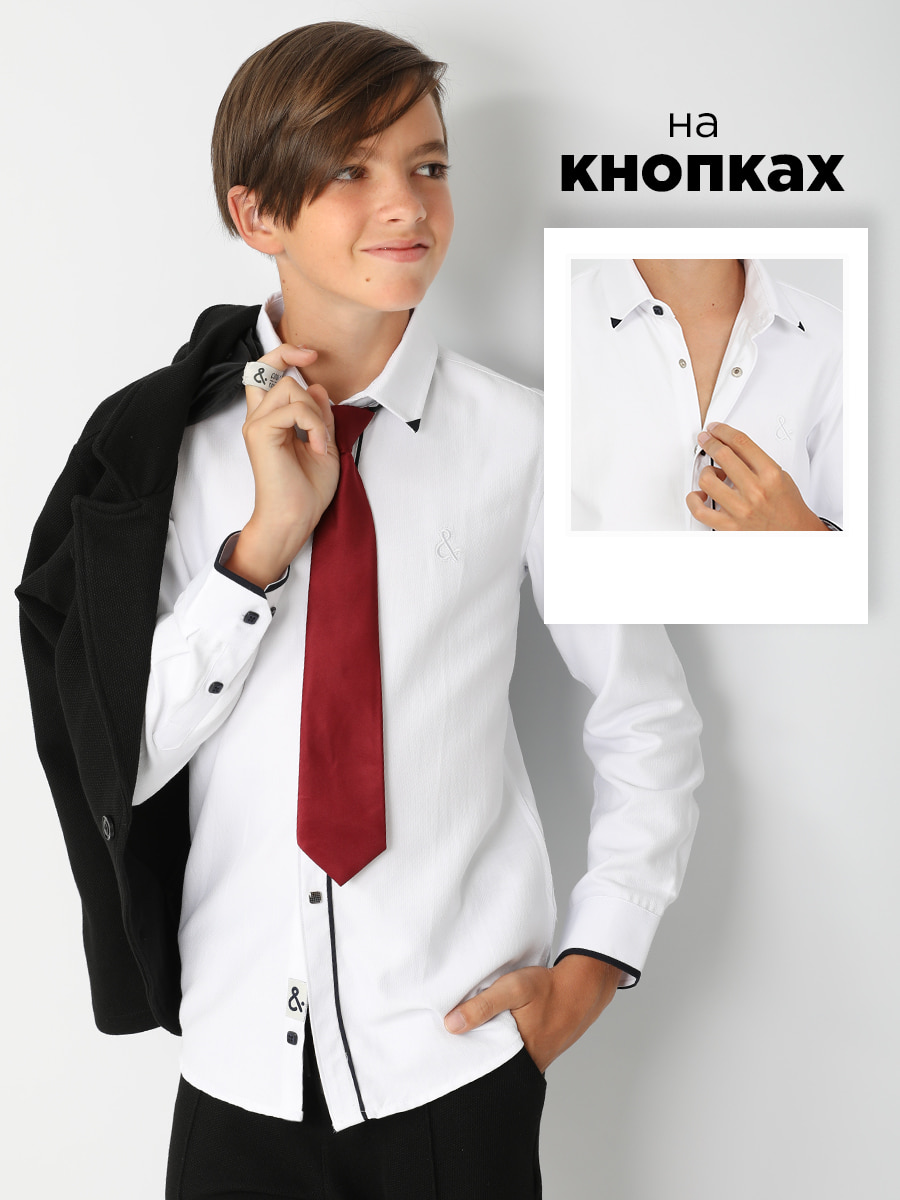 Классическая рубашка для мальчика Соль&Перец прямого силуэта, на заклёпках. Модель идеально сочетается с брюками любого фасона и подойдет как для школы, так и для торжественного мероприятия. Размер 140 (рост 140-146 см) длина изделия 60 см, обхват груди 84 см, длина рукава 54 см. Размер 152 (рост 152-158 см) длина изделия 64 см, обхват груди 90 см, длина рукава 56 см. Размер 164 (рост 158-164 см) длина изделия 68 см, обхват груди 96 см, длина рукава 60 см. Размер 176 (рост 170-176 см) длина изделия 72 см, обхват груди 100 см, длина рукава 62 см.