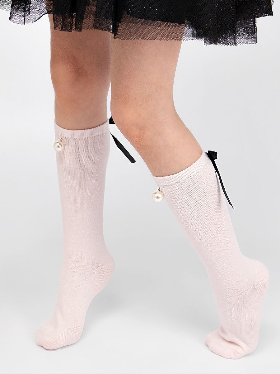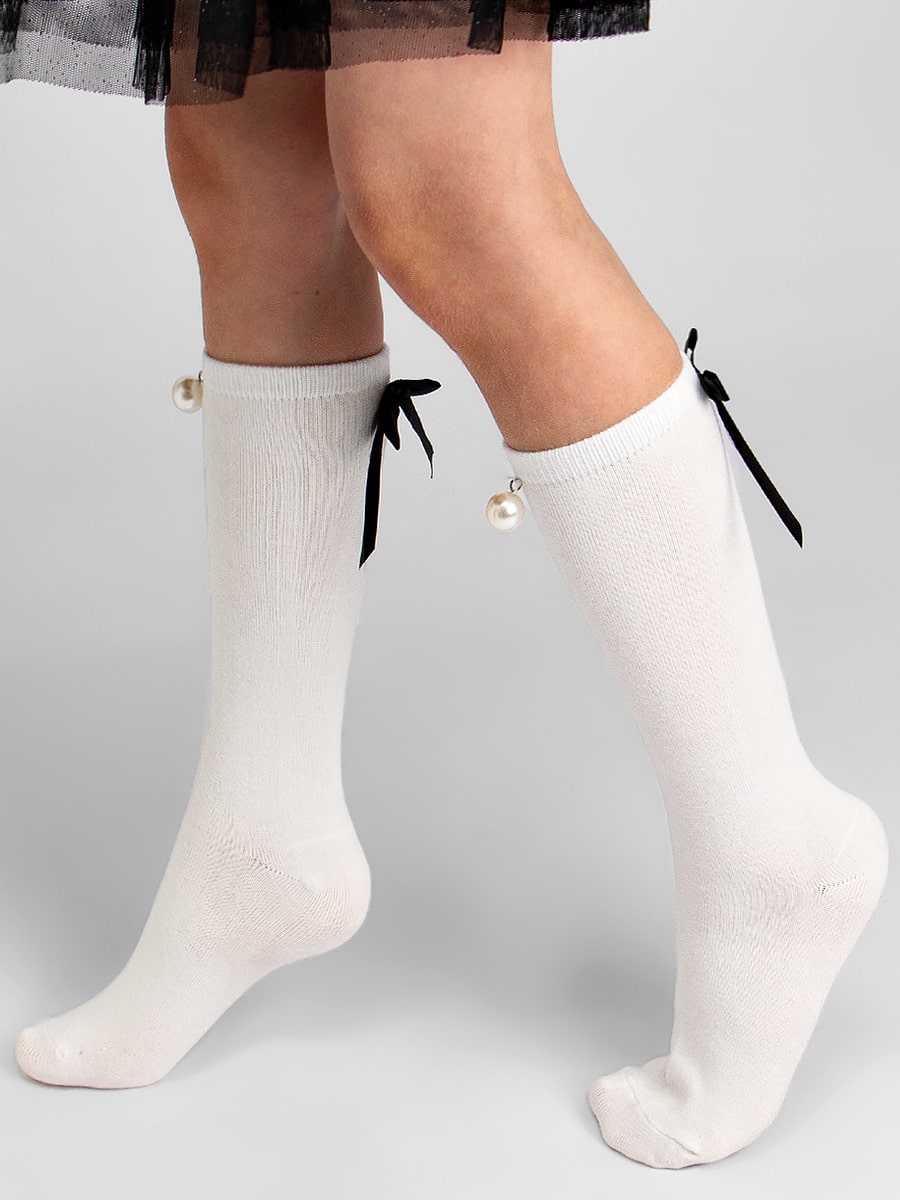 Фантазийные гольфы из натурального материала, декорированные жемчугом и бантиком. Мягкая, комфортная резинка плотно облегает ножку, не сдавливая ее. Все аксессуары пришиты. Модель прекрасно подойдет как для торжественных школьных мероприятий, так и для повседневного образа. Размер 3-4 (размер обуви 27-30) Размер 5-8 (размер обуви 31-33)