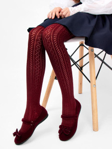 Однотонные колготки, для девочек, с ажурным рисунком выполнены из высококачественной пряжи. Легкость при надевании и комфортное облегание по ножке обеспечивает эластан с обкрученной нитью. Использование длинноворсового хлопка придаёт колготкам исключительную мягкость и уют.